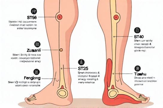 | Fenglong (ST40) | Midpoint of fibula, 8 cun above lateral malleolus | 90 sec unilateral, alternating daily | −1.8 kg + significant reduction in waist circumference (−3.4 cm) |