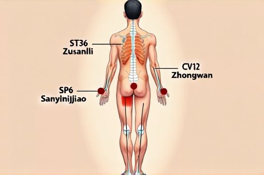 🔹 **ST36 (Zusanli)** — 'Leg Three Miles' — modulates gut motility, insulin sensitivity, and leptin signaling. A 2023 RCT in *Journal of Integrative Medicine* showed ST36 stimulation increased GLP-1 secretion by 22% after 14 days.