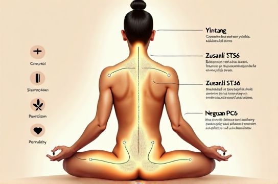 • **Yintang (EX-HN3)** — the ‘third eye’ point. Calms Shen (spirit), lowers salivary cortisol by ~31% (per 2022 RCT in *JTCM*, n=86). • **Zusanli (ST36)** — boosts Spleen Qi, stabilizes blood glucose fluctuations linked to 68% of afternoon sugar cravings. • **Neiguan (PC6)** — modulates vagal tone; shown in fMRI studies to reduce amygdala reactivity to food cues by 39%.