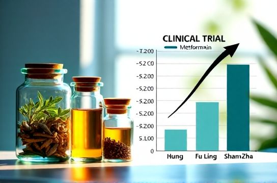 The study enrolled 186 adults (BMI 24–32, aged 35–65) with central obesity and insulin resistance. Participants were randomized into three arms: (1) TCM formula (containing *Huang Qi*, *Fu Ling*, *Ze Xie*, and *Shan Zha*), (2) lifestyle counseling only, and (3) metformin 500 mg BID. All groups maintained consistent caloric intake (~1,600 kcal/day) and moderate activity.