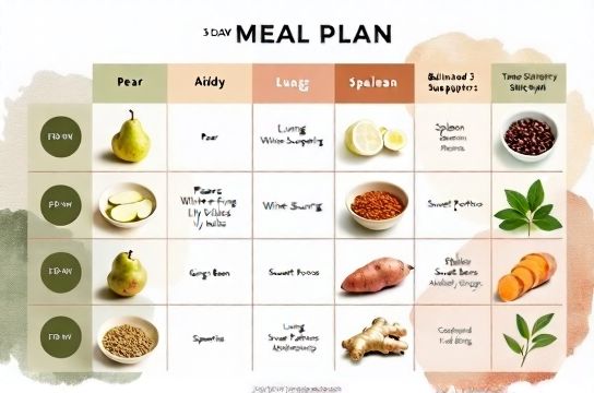 | 3 | Carrot-sweet potato congee | Chicken & shiitake stir-fry (light oil) | Steamed pear + cinnamon dust | Chrysanthemum–goji infusion |